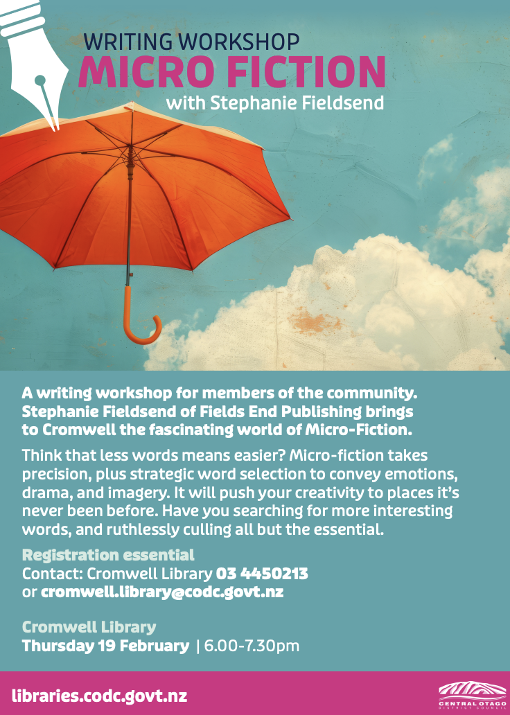 Writing workshop on Micro Fiction, led by Stephanie Fieldsend of Fields End Publishing.