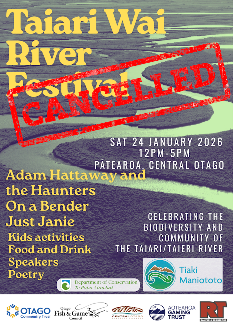 Unfortunately the Taiari Wai River Festival planned for Saturday 24th January has been cancelled due to the very poor weather forecast.