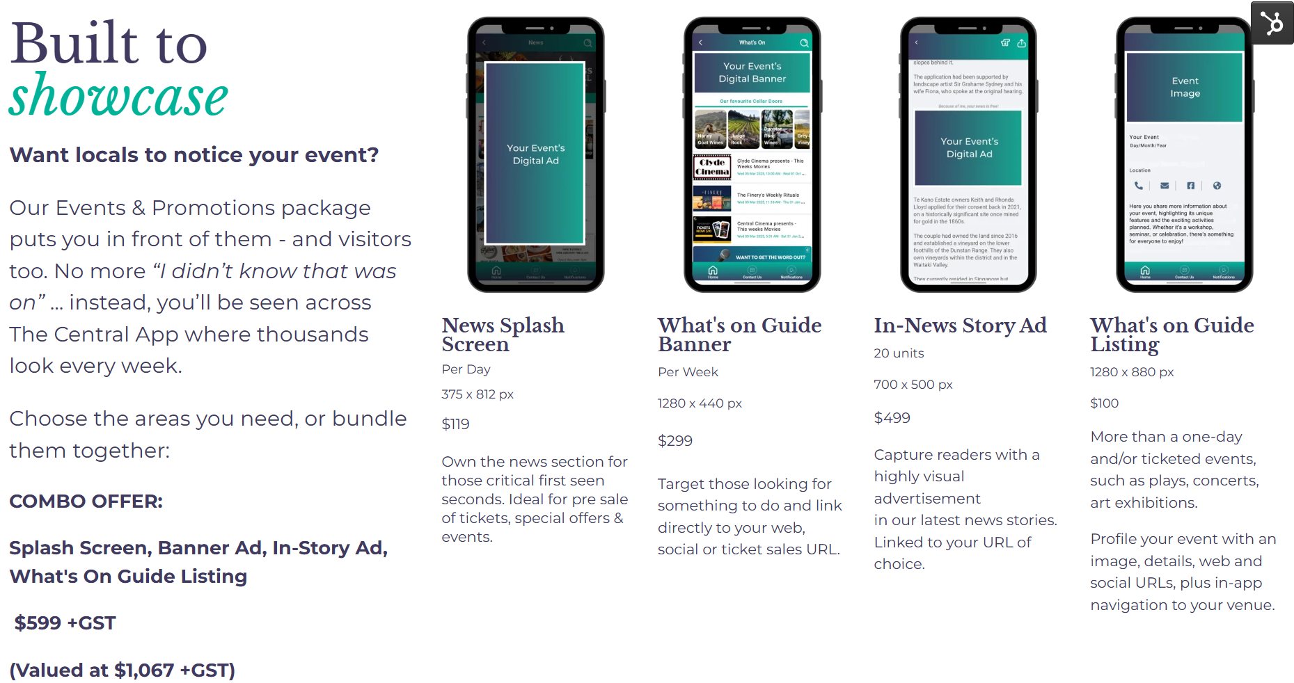 “All the bells & whistles” ($100+GST per event - members and not-for-profits and fundraising events just $50+GST)