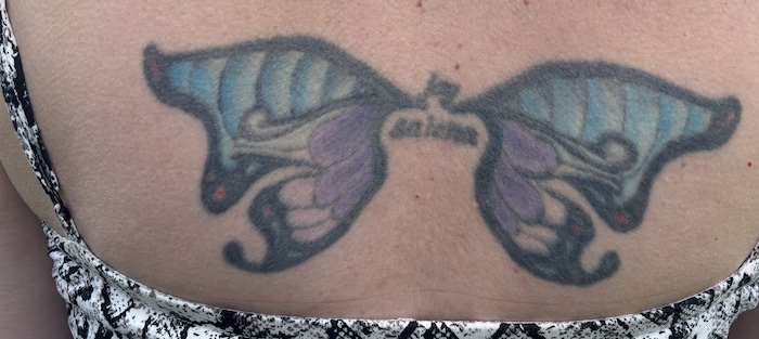 Memories of their twin girls - butterfly wings on Lena’s back with their names inside. Photo: The Central App