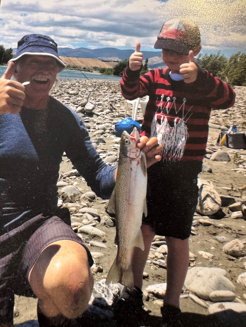 Bill and his grandson /fishing buddy Harry after they strike a great catch.