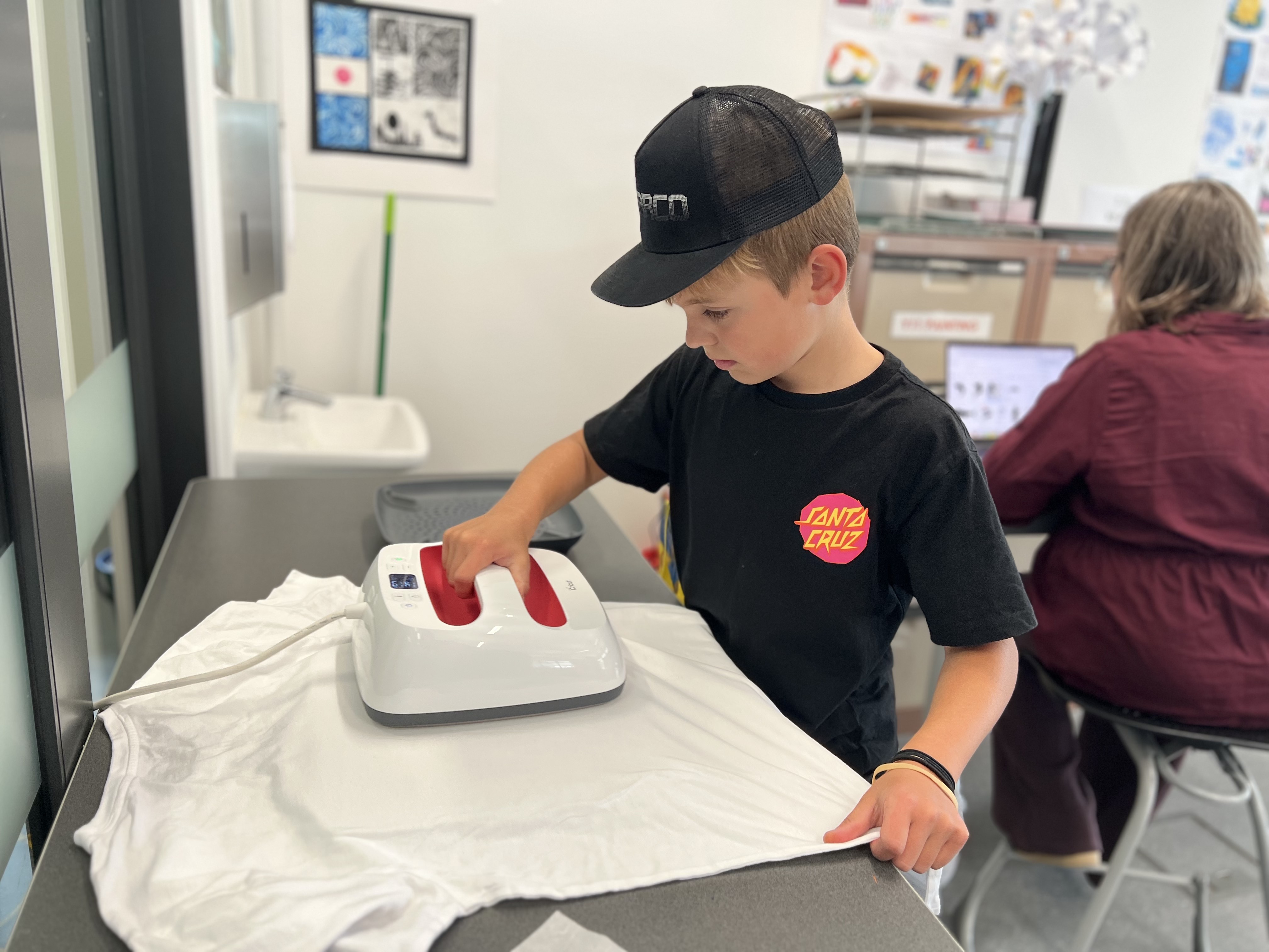 Sasi said it was “pretty cool” to have a go at doing something “year tens would be doing”, and it had been challenging figuring out how to get her design from the computer through to the cutting machine.