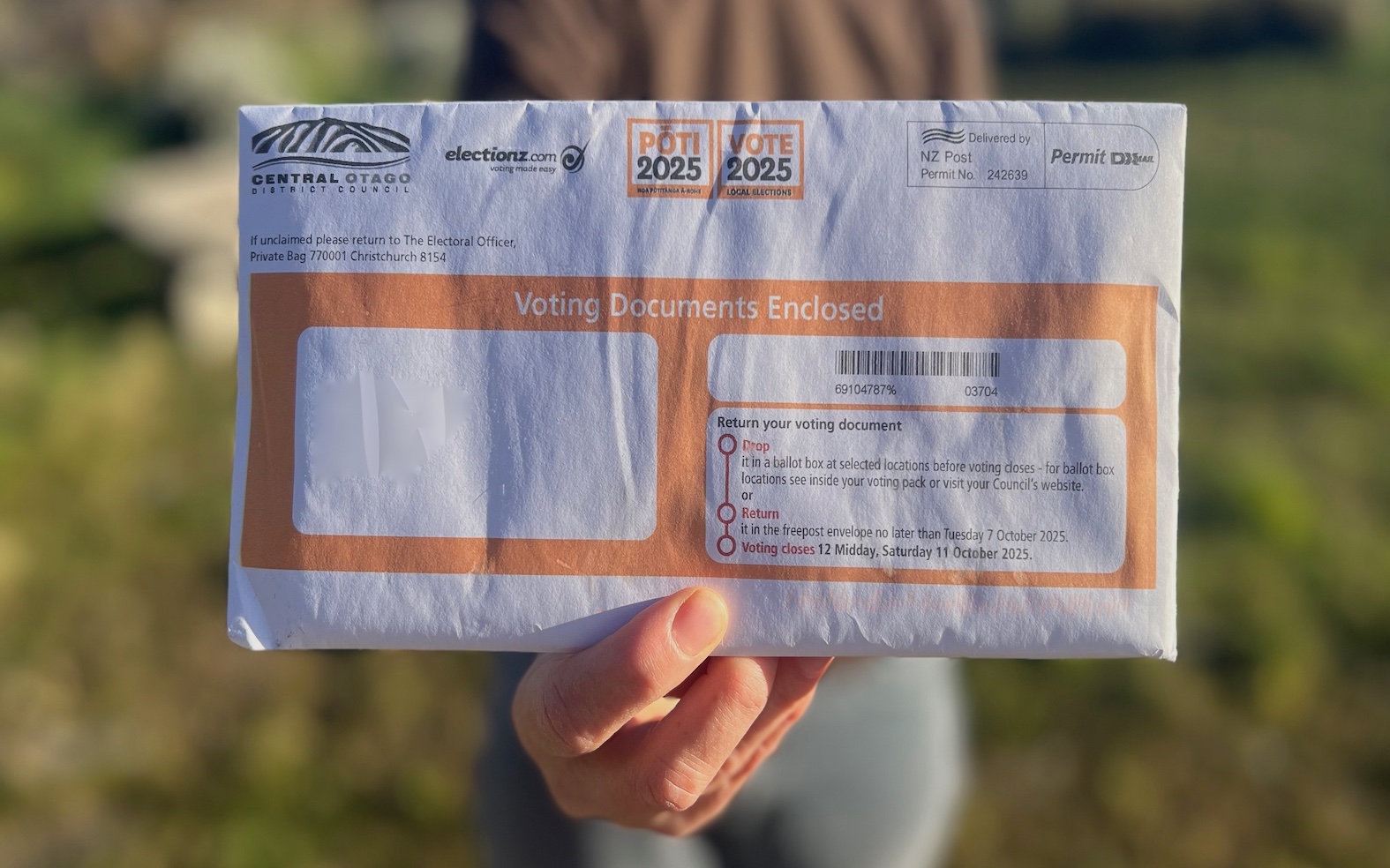 Voting papers have been delivered to letterboxes across Central Otago, with residents and ratepayers given until October 11 to have their say on who represents them on district and regional governing bodies. Image: The Central App