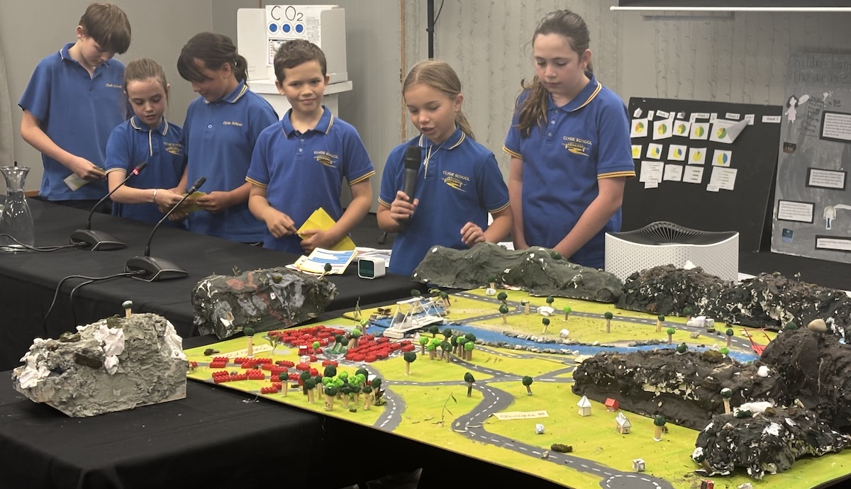 The Kiwi Class created a model of the Alexandra–Clyde basin to demonstrate how winter smog becomes trapped in an inversion layer.