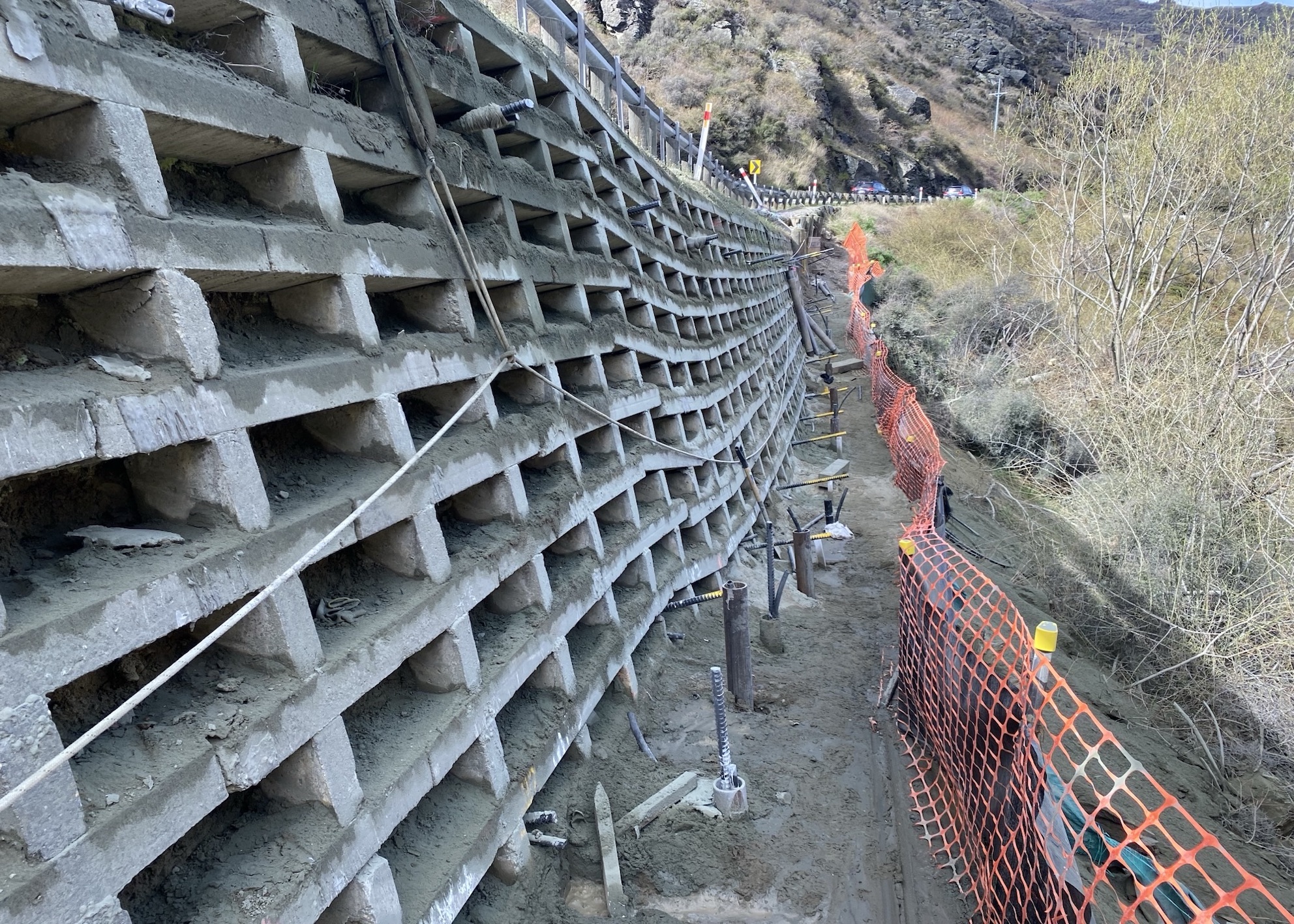 The project targets a narrow stretch of the gorge where the road surface has started to crack and slump due to gradual movement in the retaining walls beneath the highway, which is hemmed in by a rock face on one side and drops steeply to the Kawarau River on the other.