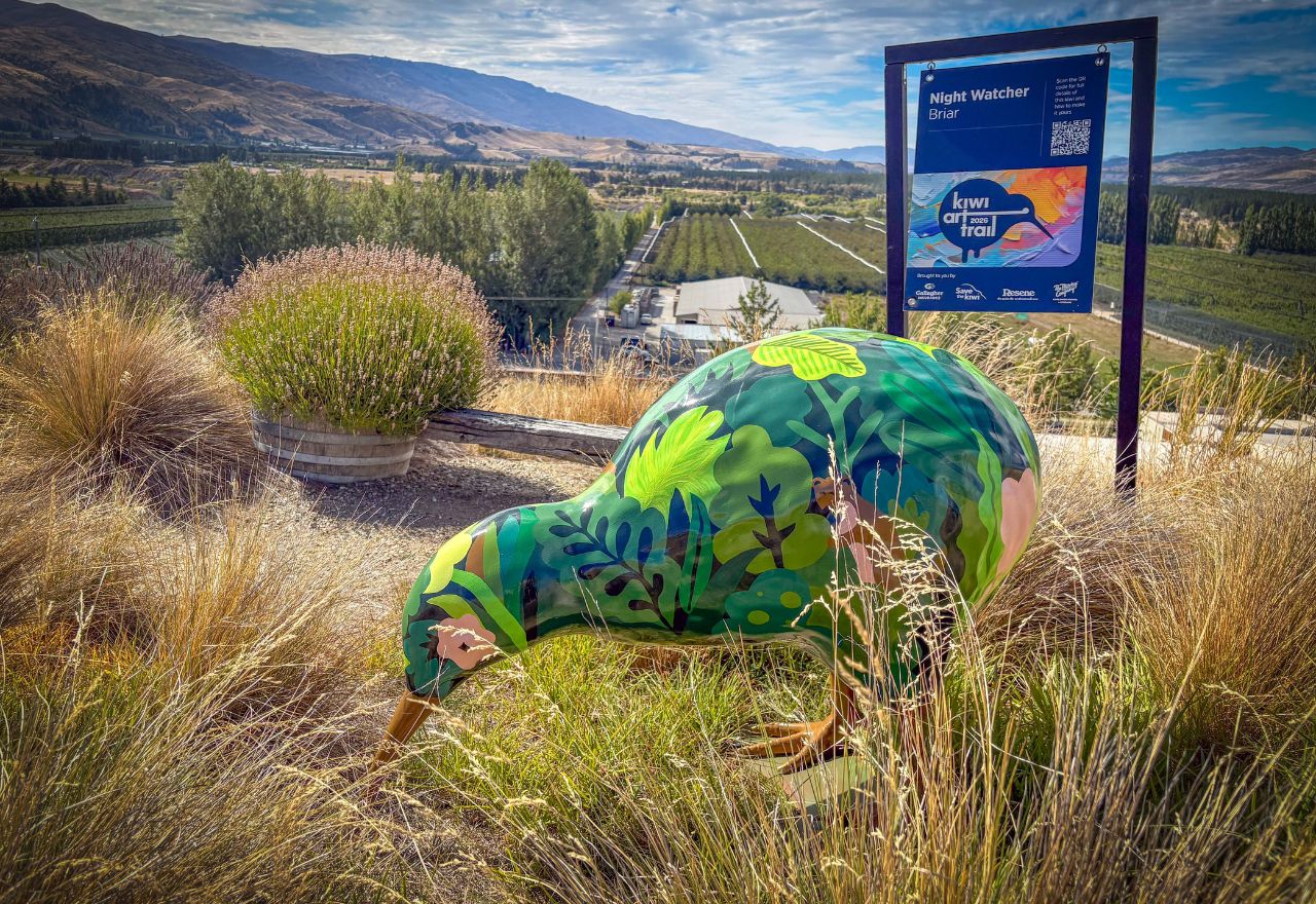Seventeen oversized kiwi sculptures have appeared across cellar doors and hospitality venues in the village this week as part of the 2026 Kiwi Art Trail.