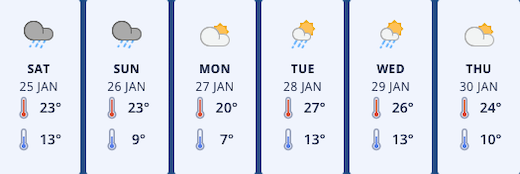 “This weekend temperatures return to the low to mid-twenties but drop back down on Monday as fresh southwesterlies arrive to the region. Midweek may see temperatures back in the mid-twenties for a time as a weather system approaches with westerly winds.