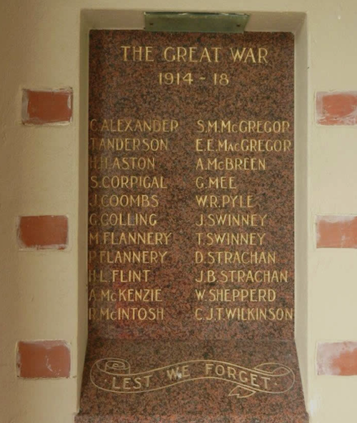 The New Zealand History website states the hall includes the First and Second World War rolls of honour.