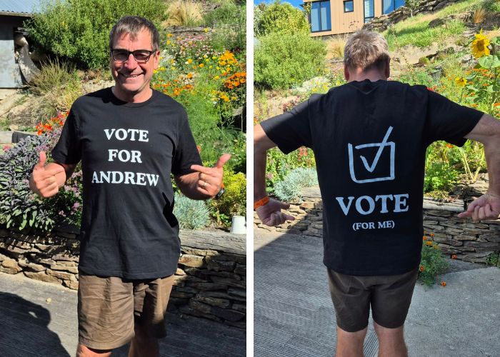 Vincent ward by-election candidate Andrew Dowling says his campaign t-shirt is a conversation starter. Image: Supplied
