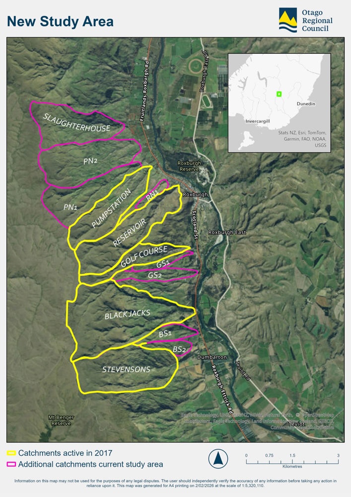 The map shows the 13 catchments in the Teviot Valley included in the new study. Image: supplied