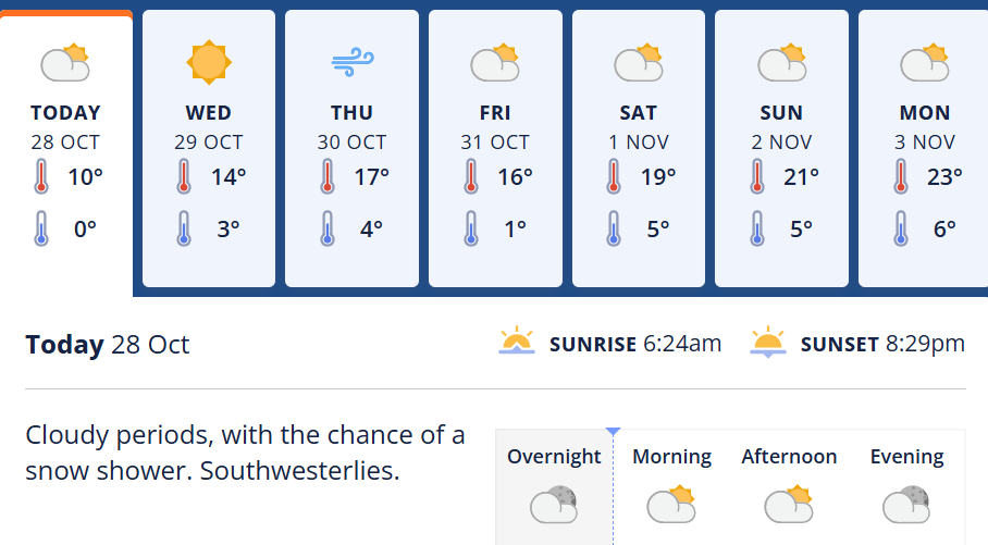The final days of October are bringing a frosty sting, but warmer weather is on the way. Photo: MetService.