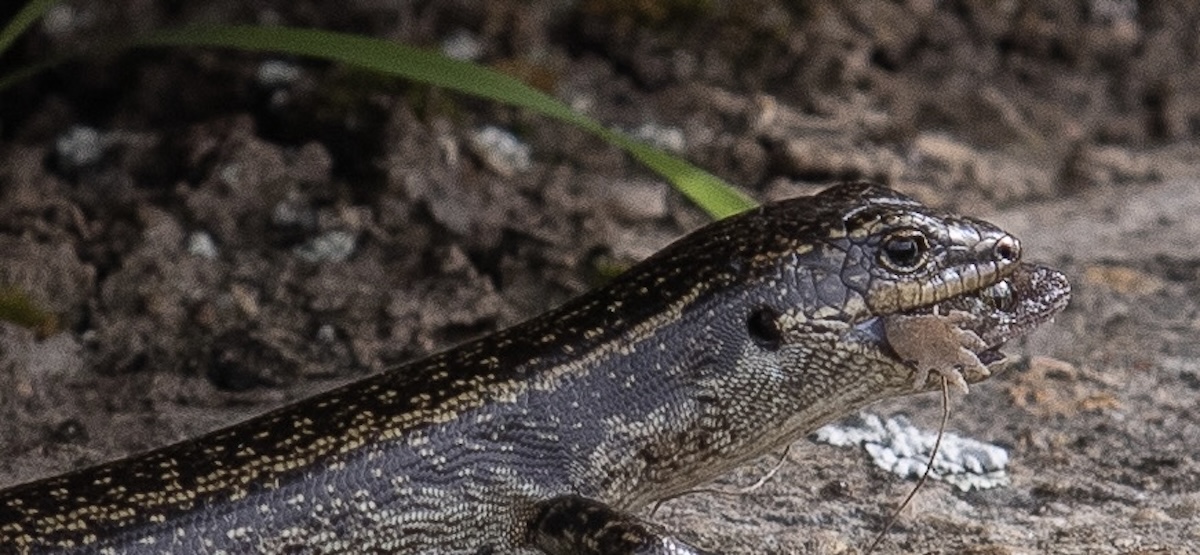 It’s all part of the natural cycle of life. Also, lizards are omnivores and not only munch away on coprosma berries and insects, but the bigger Grand skinks will sometimes eat a smaller cousin, such as the Schist Gecko as well.
