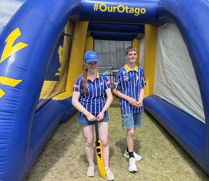 The brother and sister both play competitive cricket and dressed in Otago colours for the game.