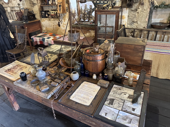 “The compartment underneath was covered over by Oliver, …the only artefacts in there were Mrs Oliver’s shoes, her tiny [leather] booties, she was only 17, old bottles that had come from Europe… and European cutlery.”