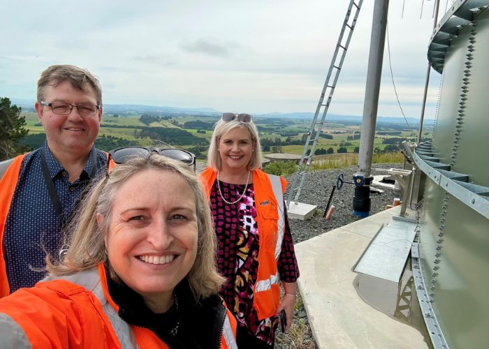 Southern Waters programme director Fiona Smith (middle) with Clutha District Council staff on a site visit. Image: Supplied