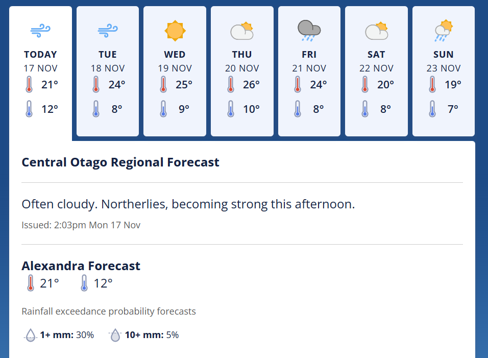 Closer to home, MetService shows the winds are on the way up, expect them to strengthen this afternoon and into tomorrow. Then we’re back to sunshine by Wednesday.