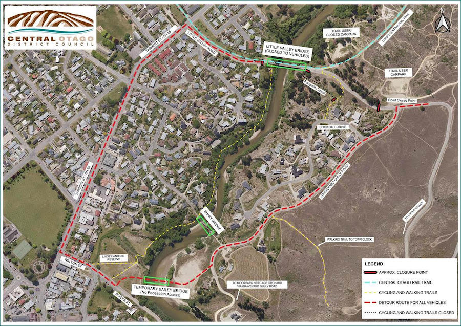 This includes the Otago Central Rail Trail, and access under the bridge via the river path.